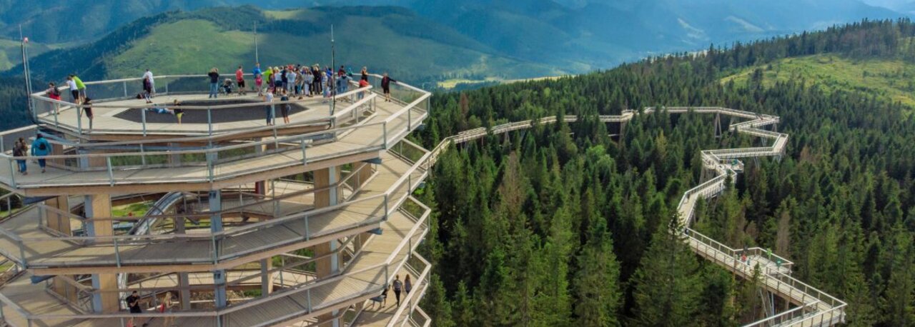 Ścieżka w Koronach Drzew Bachledowa Dolina usytuowana jest na grzbiecie Spiskiej Magury, na granicy Pienińskiego i Tatrzańskiego Parku Narodowego. Lekkim pochyleniem bezpiecznie doprowadzi z poziomu ziemi aż do wysokości 24 metrów bezpośrednio do koron drzew.