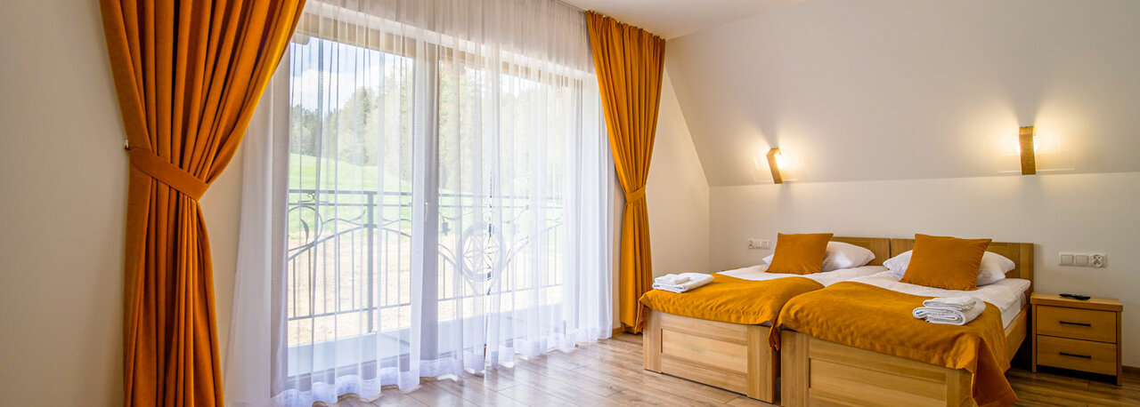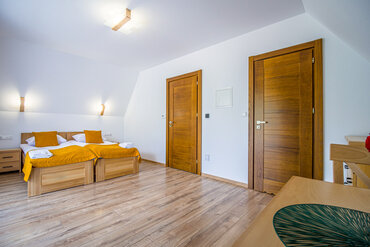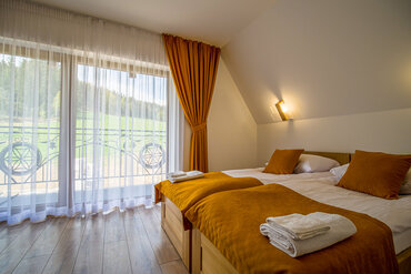Pokój dwuosobowy z łazienką. Istnieje możliwość dostawy łóżeczka dla dziecka. Powierzchnia jaką stanowi to 16m2.